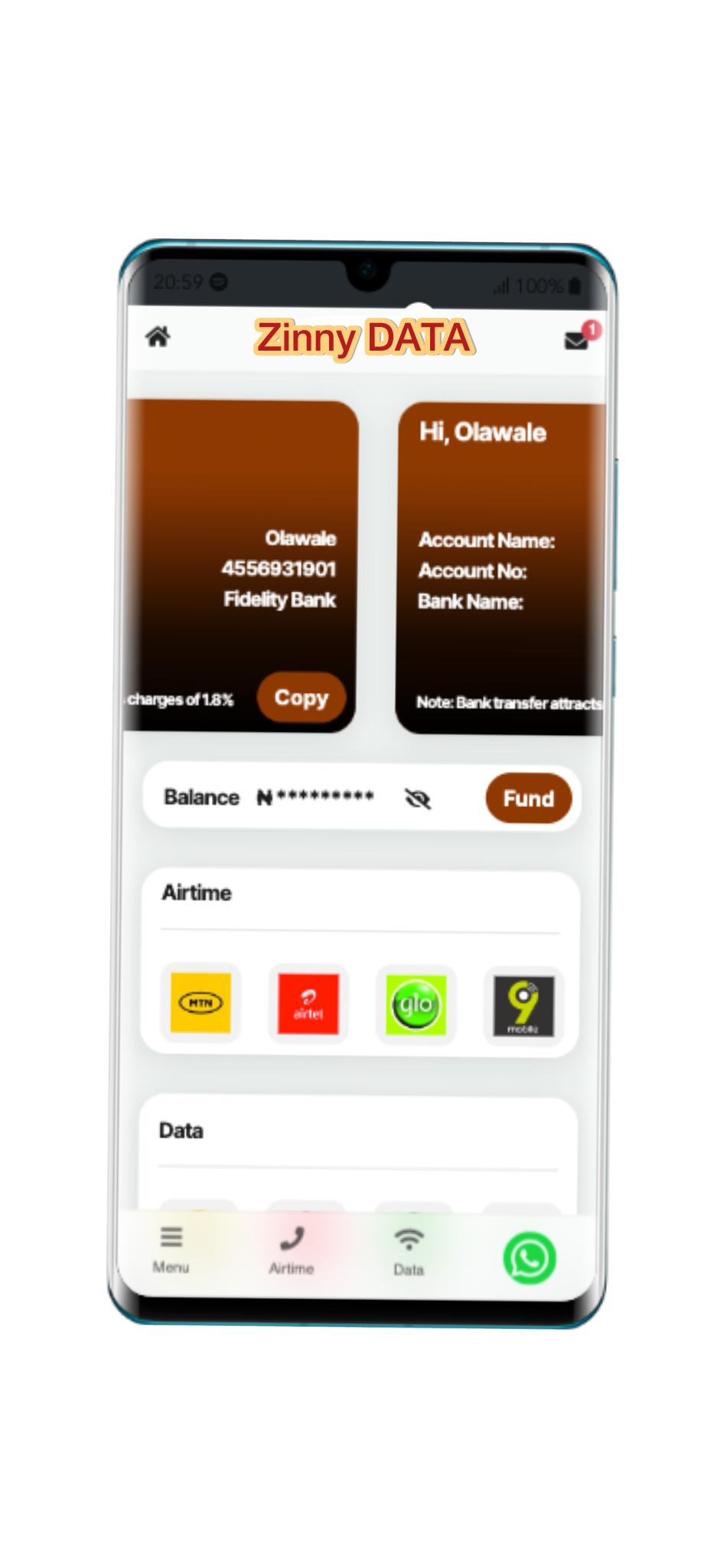 Buy internet subscription of all networks (MTN, Airtel,Glo,9mobile) within seconds. You can recharge any network of your choice from Zinny Data Payment Solution
